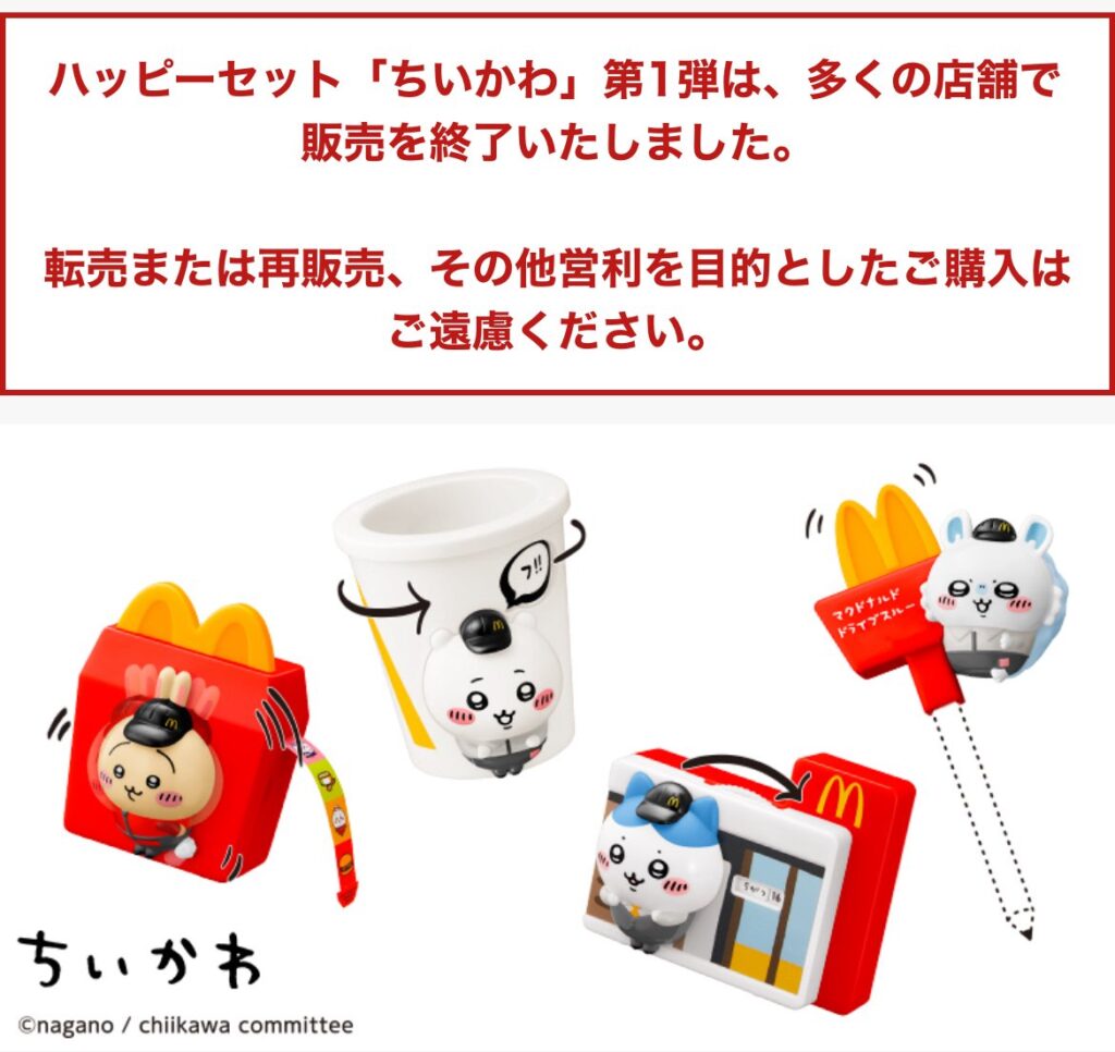 (朗報)転売ヤー、ちいかわハッピーセットで儲けようとするもマックのちいかわ大量用意による価格破壊によって爆死確定へ